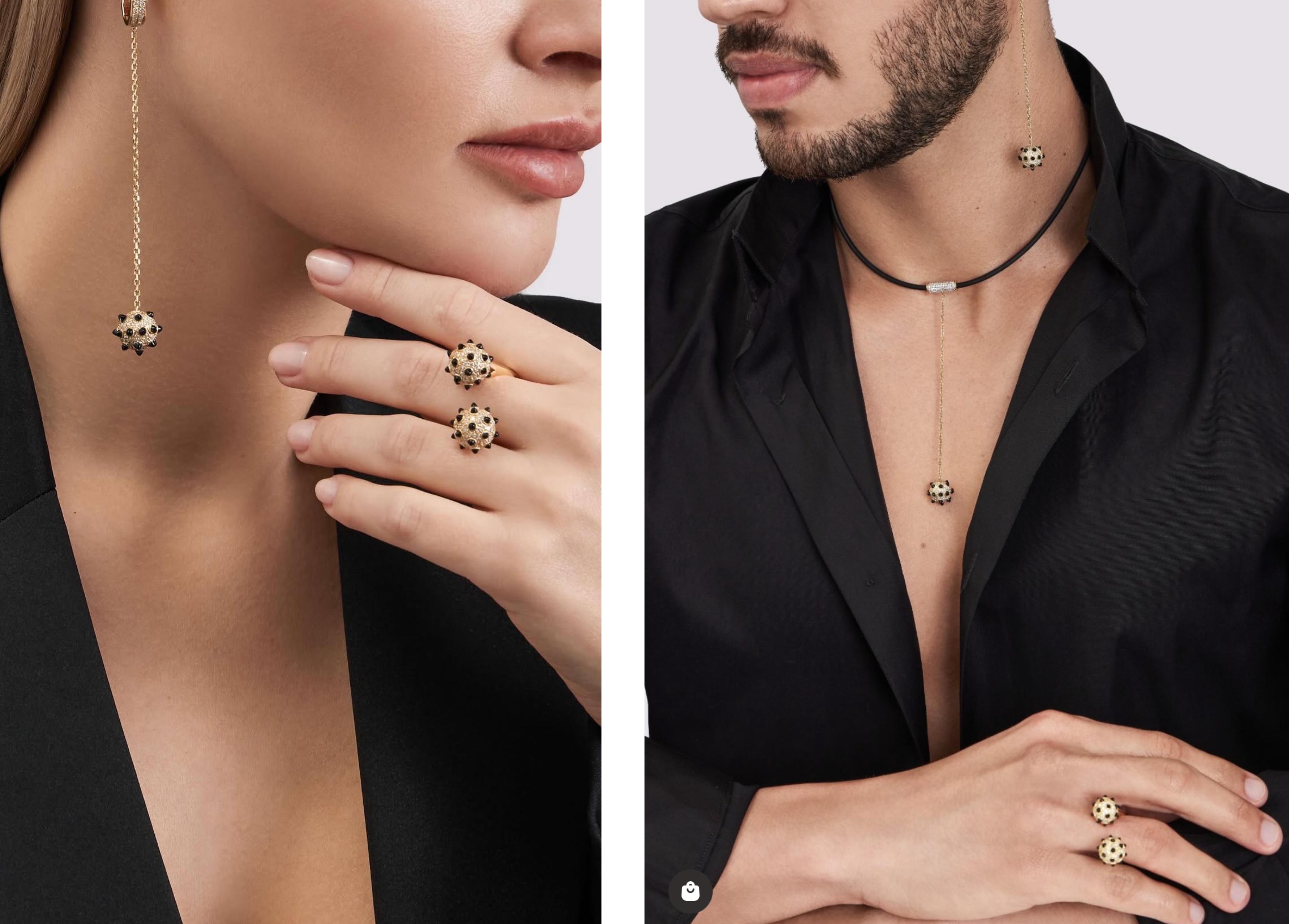 The result is jewellery that sits somewhere between contemporary design object and fashion statement — illustrating the brand’s willingness to explore unconventional material pairings while maintaining a refined finish.